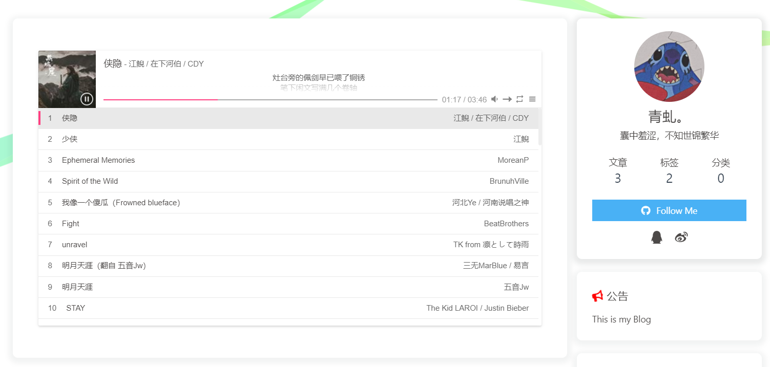 以上歌单就创建好了接下来就是使用hexo-tag-aplayer插件